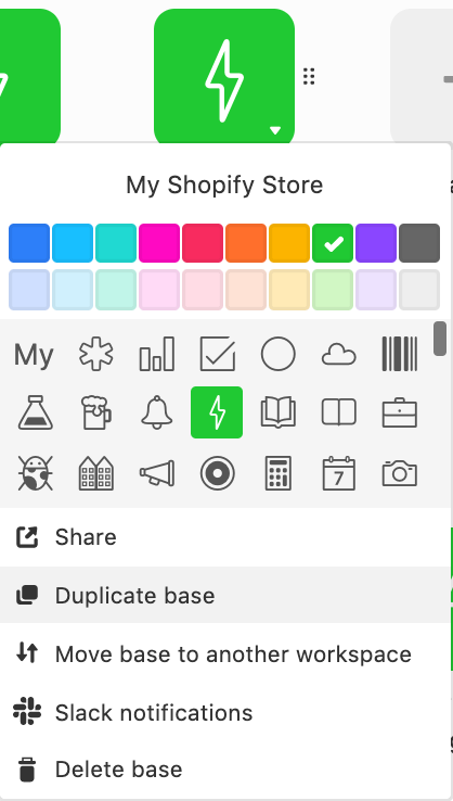 Once your product information has fully synced from Shopify to Airtable simply clone your base. Rename the clone with the date of the backup. If you want to retrieve data from this clone base you can either copy/paste the necessary information into your main Shopify base. Just remember to not copy over Shopify Ids for any missing products or variants, as Shopify will create new ones.